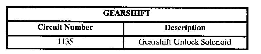The gearshift unlock solenoid is energized by the BCM switching circuit 1135 to ground. When energized, the gearshift unlock solenoid will allow shifting from PARK. A condition for shifting from PARK is that the foot brake must be applied. The BCM receives this information over the serial data link from the engine controller.