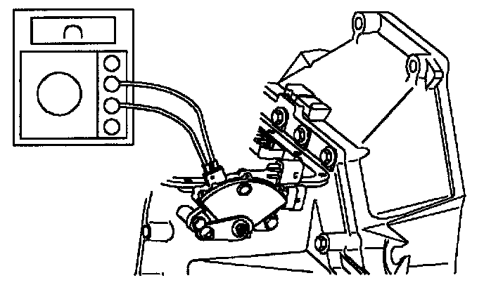 1. Place transaxle in D (Drive). Use ohmmeter or continuity tester to check for continuity across terminals on selector switch. Rotate the transaxle range switch from the left fender towards the engine until continuity is achieved.
