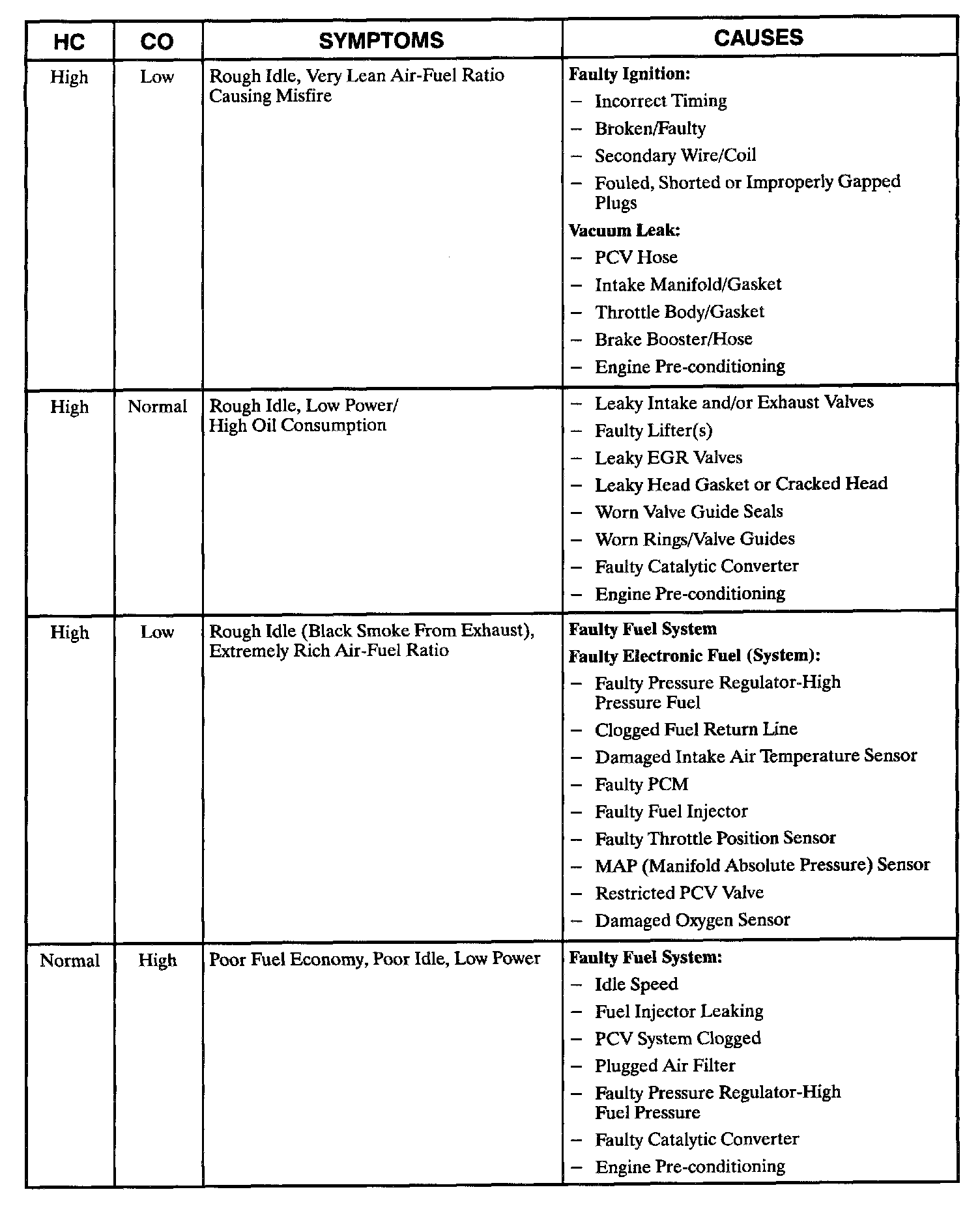 Idle HC/CO Concentration CheckDiagnostic Chart: