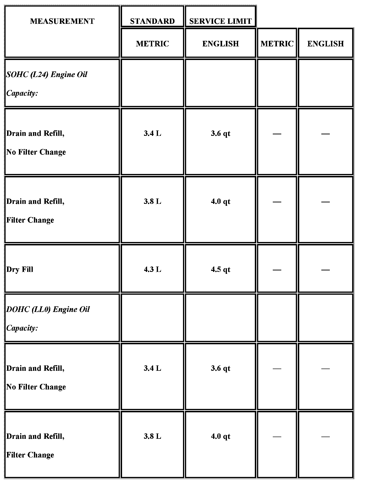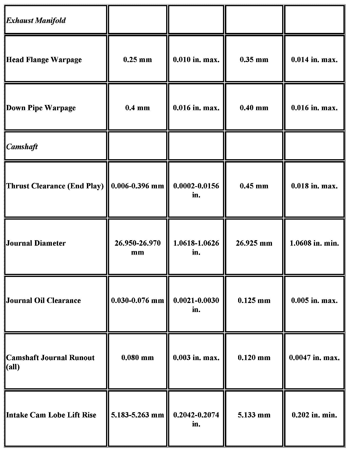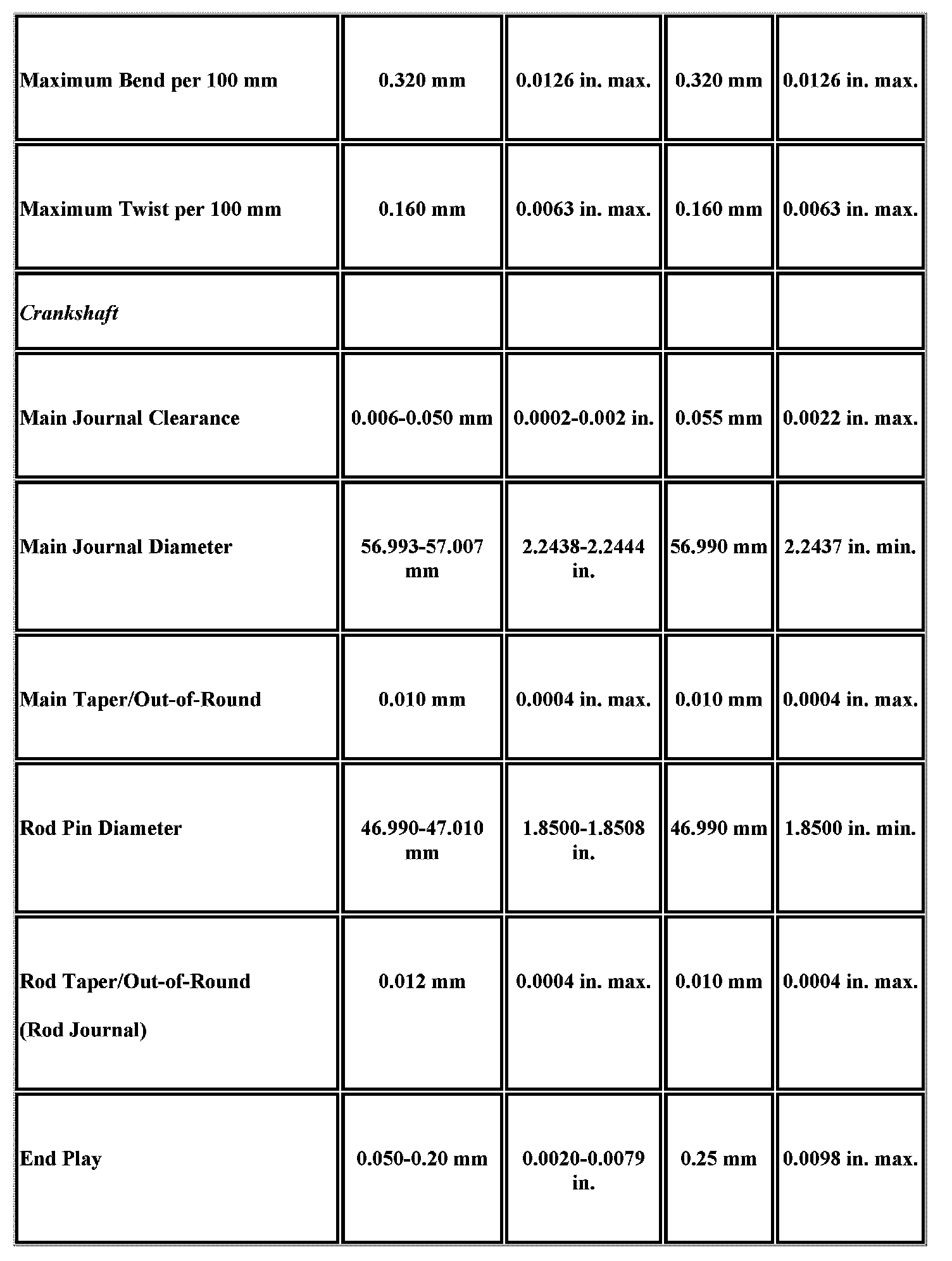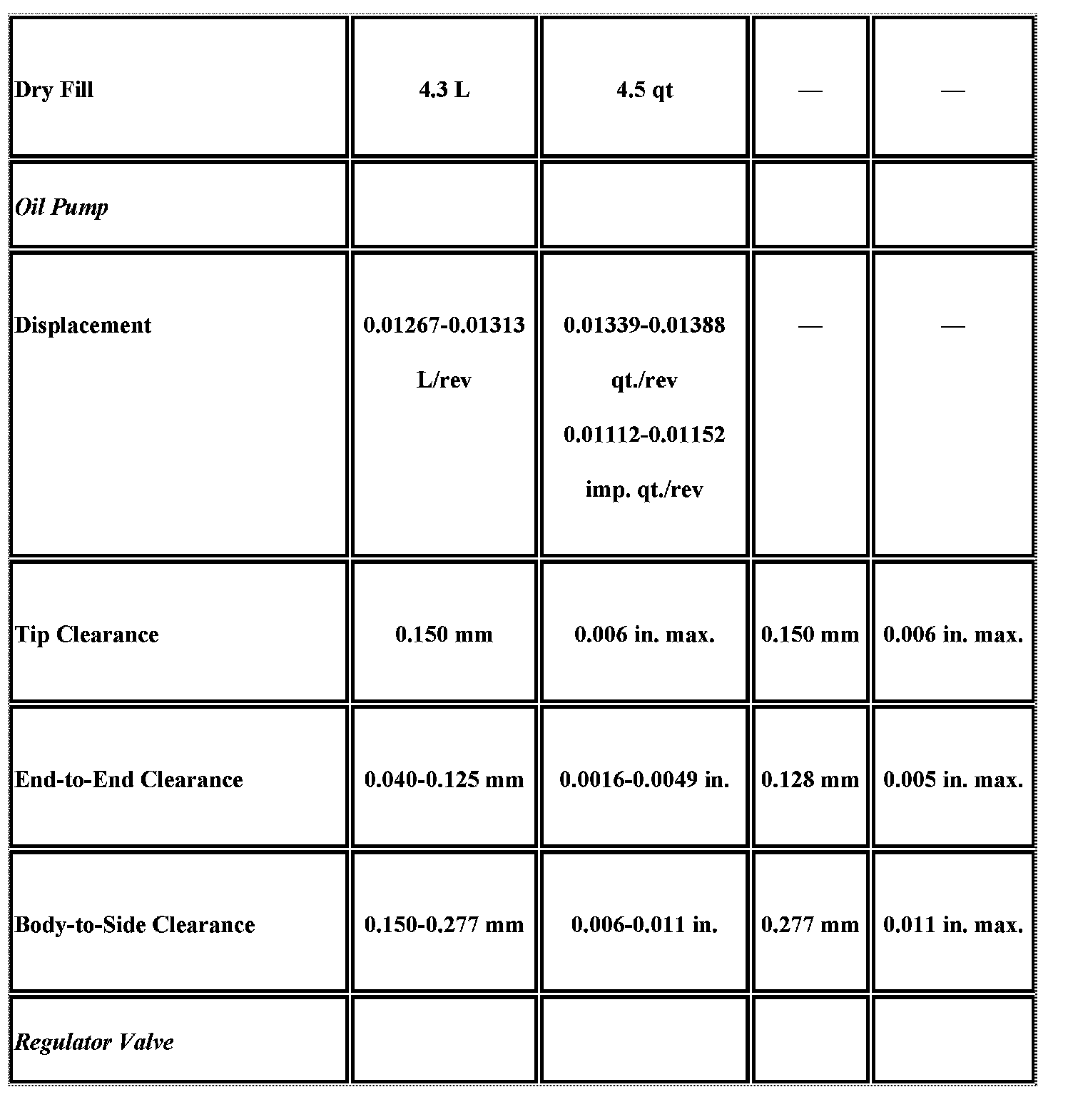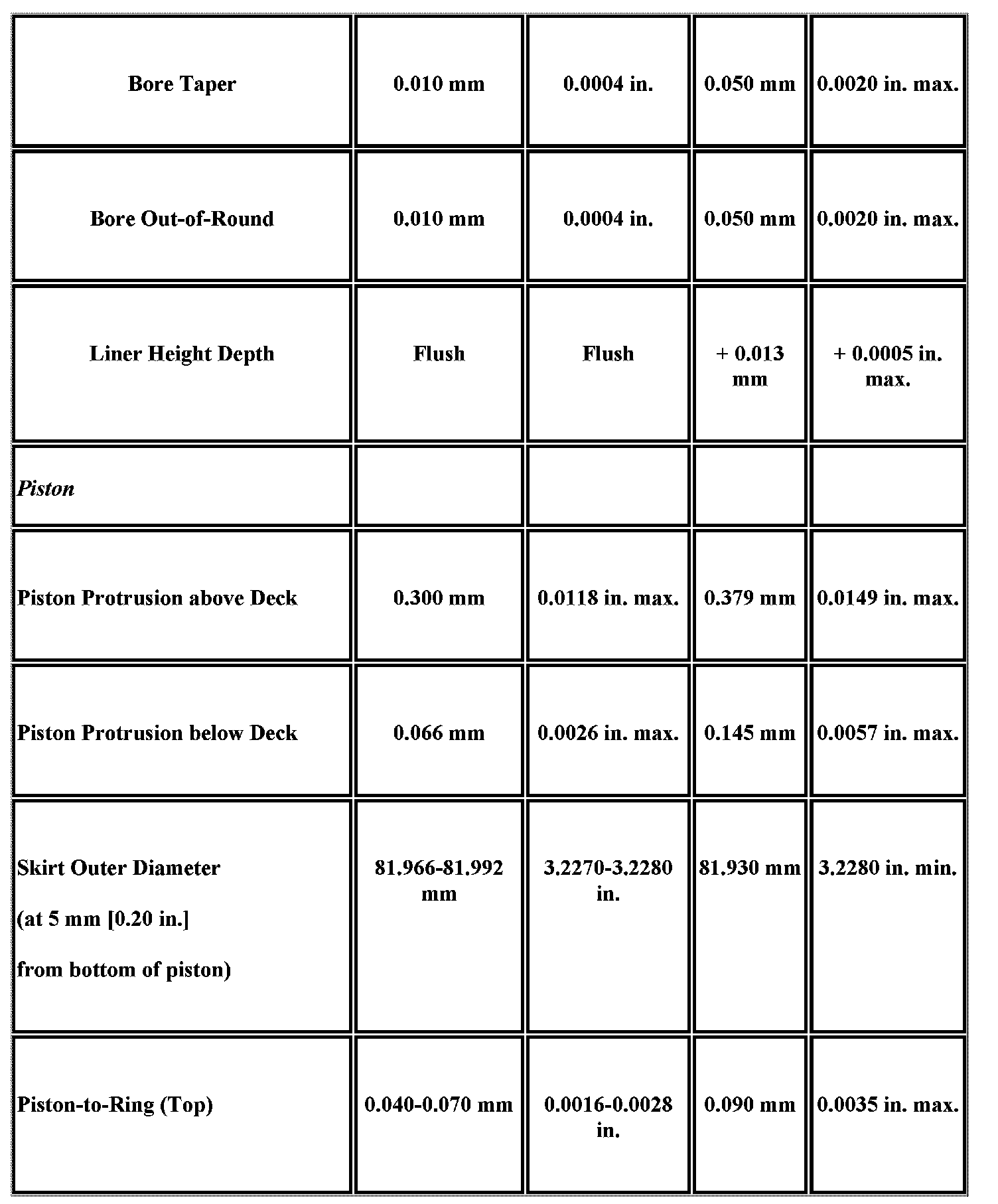 Engine Mechanical Specifications
