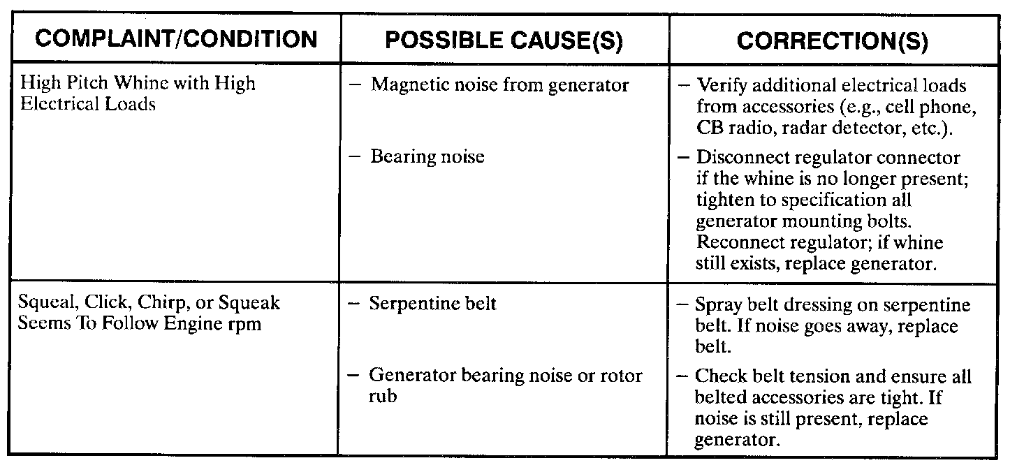 Generator Noise Problem Chart