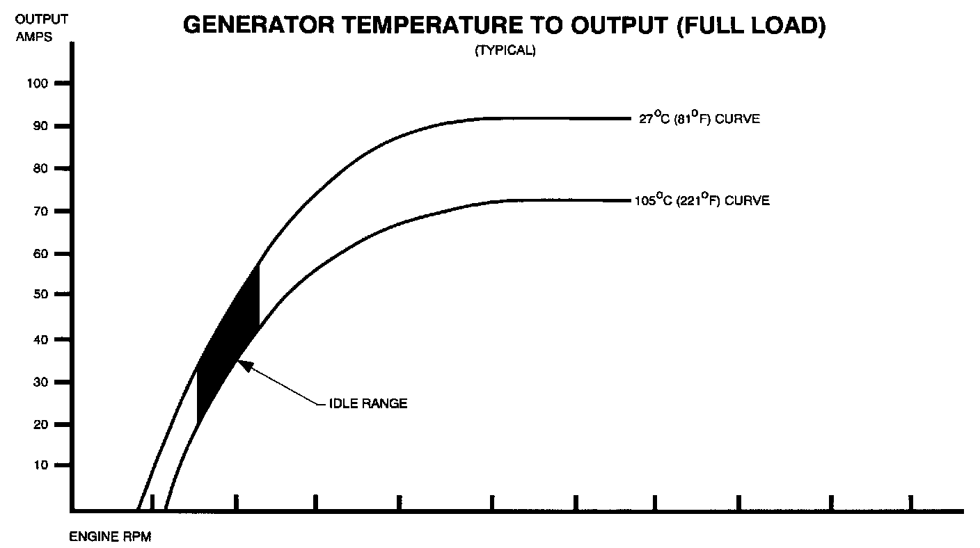IMPORTANT: When testing a generator, the load, temperature and rpm must be considered to obtain the most accurate conclusion. When using the system tester or a carbon pile tester (carbon pile fully On), the load will be approximately maximum load.