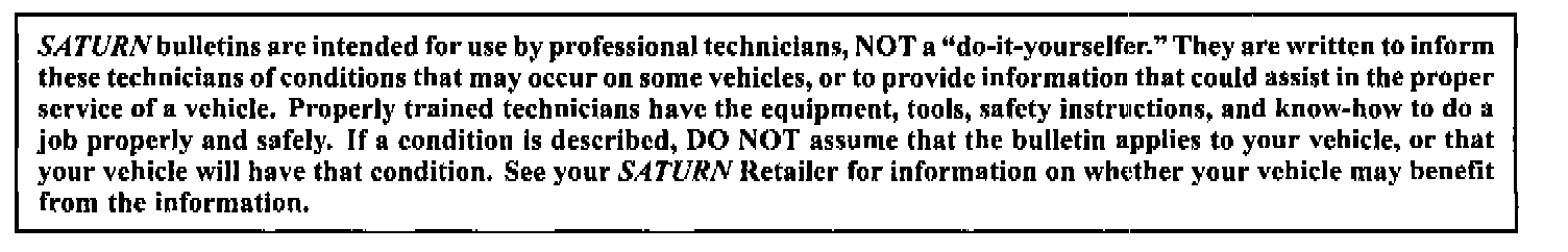 2000 and 2001 S-Series SC2, SL2, and SW2 Models up to and including VIN 1Z229725