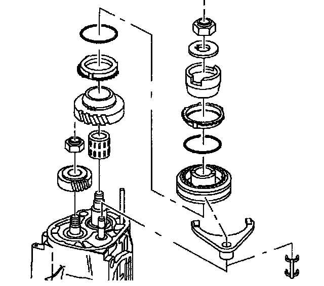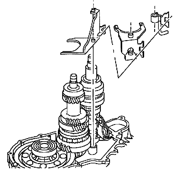 10. Remove 5th/Reverse shift fork, 5th/Reverse synchronizer sleeve, 5th/Reverse hub, blocker assembly, and 5th drive gear.