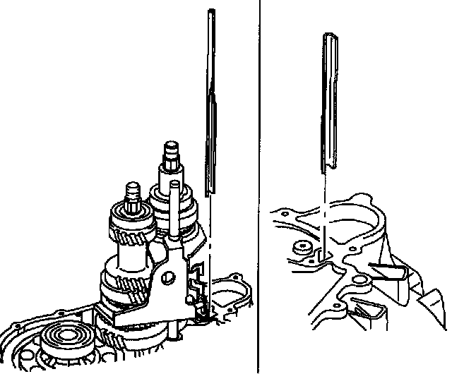 5. Move two shift forks to lock the transaxle in two gears.