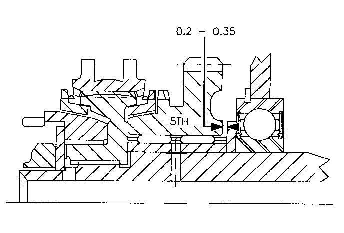 2. Measure clearance between 5th drive gear and 5th gear thrust washer.