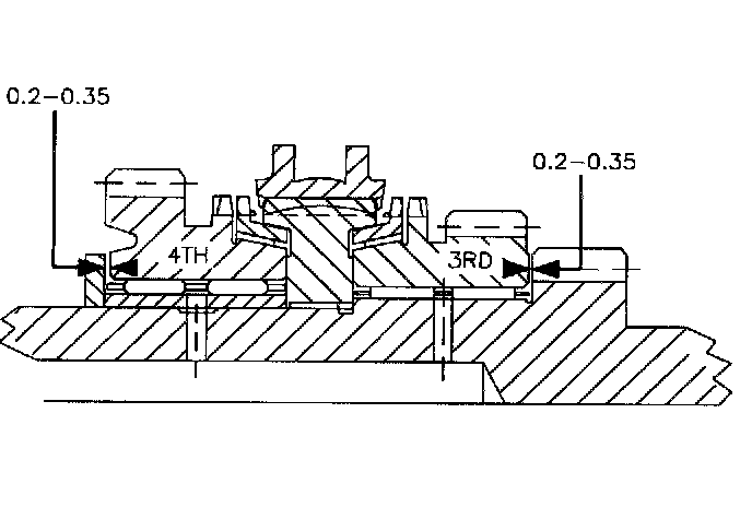 3. Measure clearance between 4th drive gear and 4th gear thrust washer.