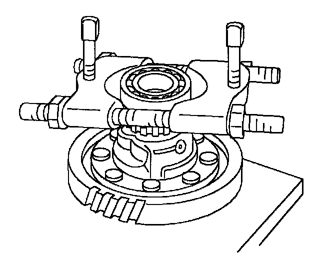 b. To remove the differential gear side bearing, use a two jaw puller. Place a shield over bearing to provide protection if bearing should break.
