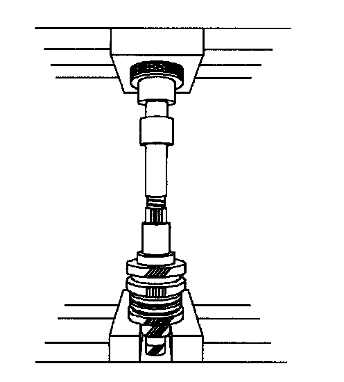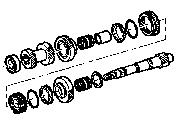 1. Use press to disassemble output shaft assembly. Place support under 1st driven gear.