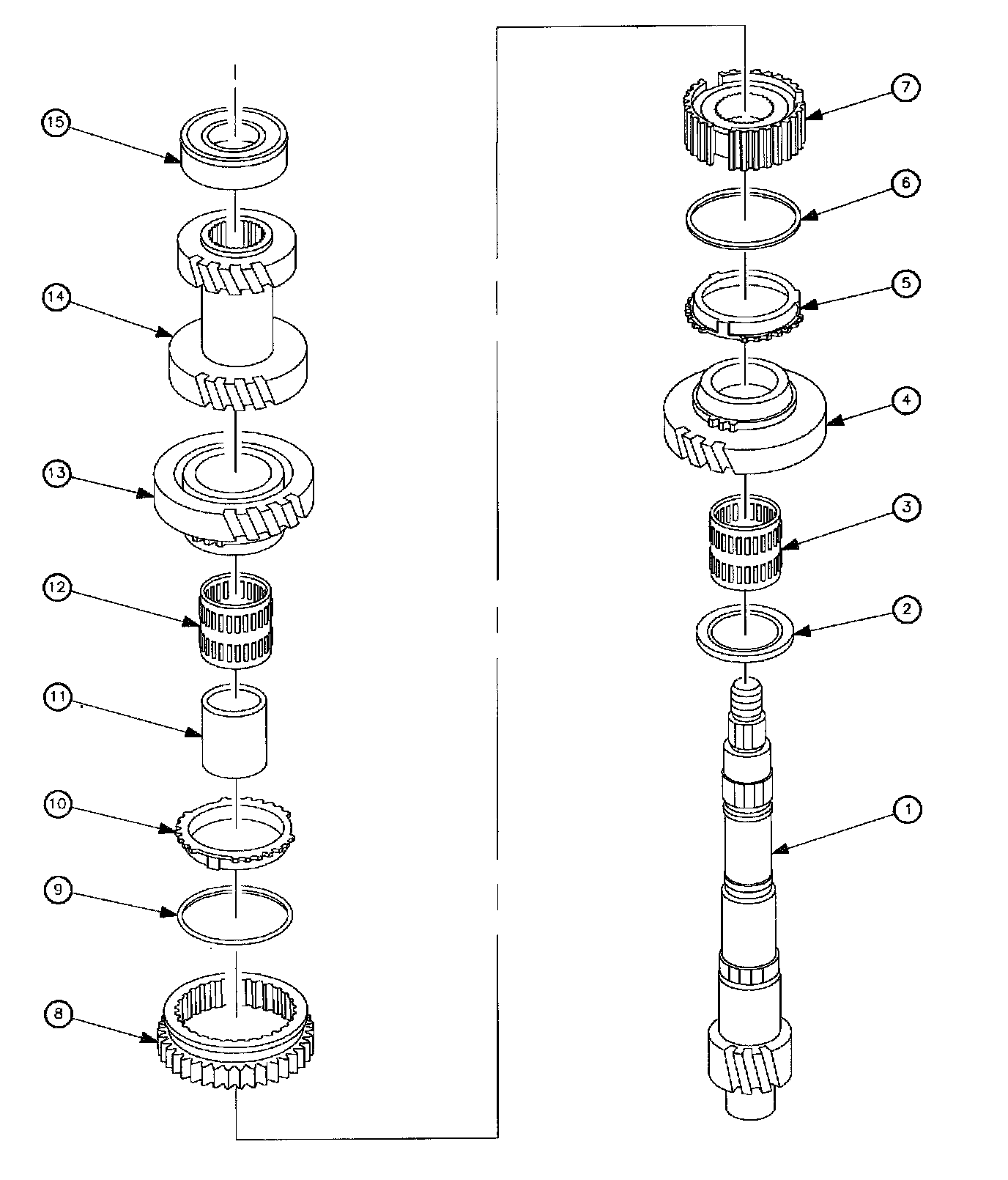 7. Remove 2nd driven gear blocker ring, blocker ring spring, and 1st/2nd synchronizer sleeve.