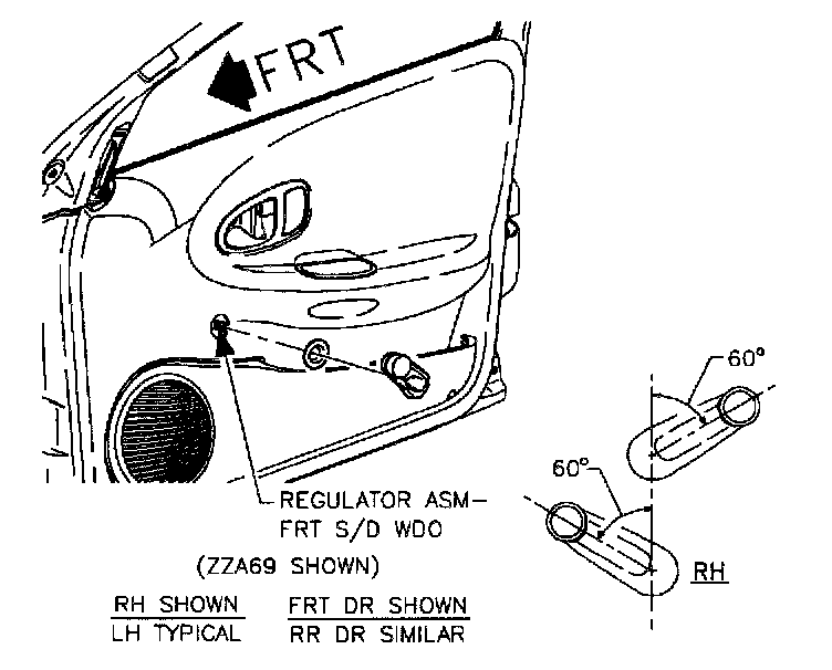 1. Disengage manual window regulator handle retention spring with a standard handle tool, or by working a cloth back and forth between handle and the bearing plate.