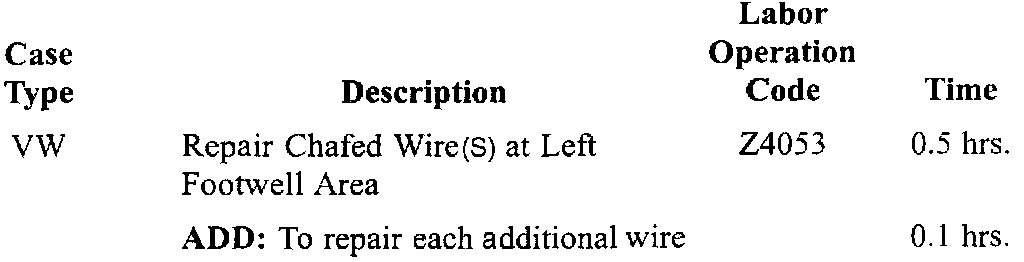 The cause of the above conditions may be the instrument panel (I/P) wire harness coming into contact with a left side I/P bracket at left side footwell area. At that location, the I/P harness connects to a Body-to-I/P inline connector. The I/P harness is attached to the left side I/P bracket by a rosebud clip. Between the rosebud clip and the I/P connector, the harness may come into contact with the left side I/P bracket. Chafing the wiring harness may cause a short to ground on one or more of the following circuits: