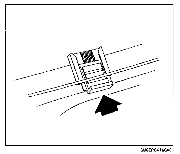 IMPORTANT: The glass anti-slide clips will be damaged in the removal process. Make certain the anti-slide clips are replaced with new service parts. Do not slide the adjuster upward until the window assembly is installed.