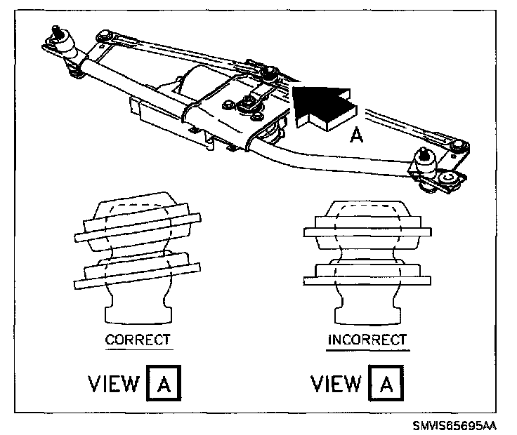 2. Press the transmission links onto the wiper motor crank arm firmly by hand. Ensure that the position of the transmission links are not bottomed on the crank arm ball.