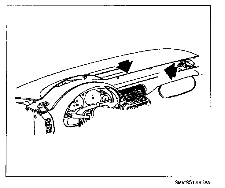 NOTE: Exercise care when removing instrument panel upper trim panel to keep from scratching windshield garnish moldings.