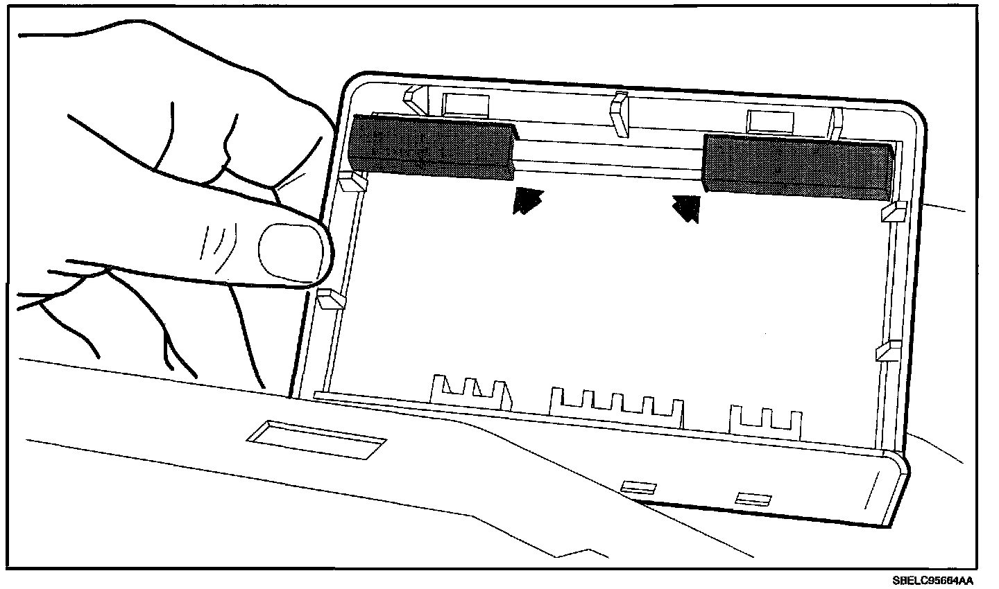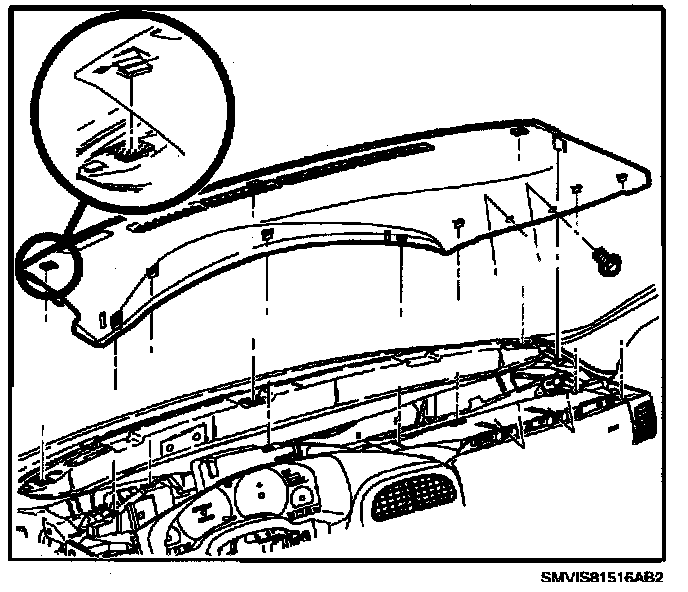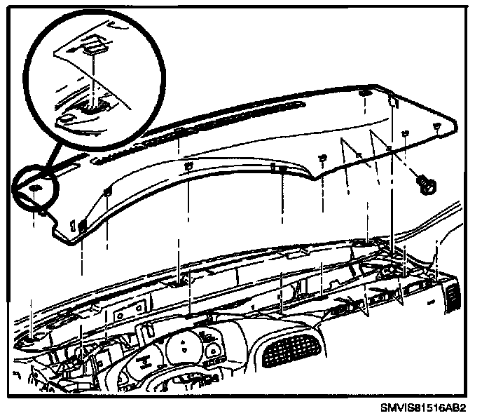 10.3 Align tabs on sides of upper trim panel with openings in windshield garnish molding.