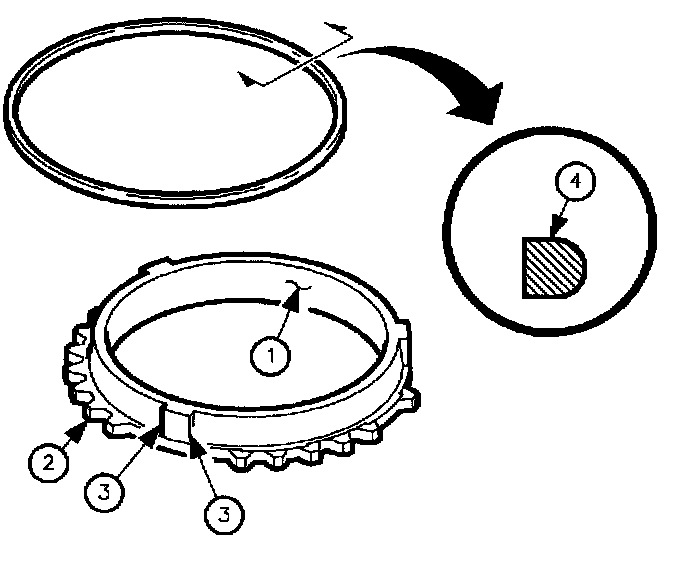 2. Inspect synchronizer blocker ring teeth (2) for excessive wear.