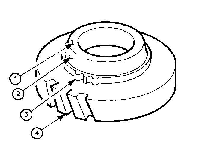 7. Inspect clutching teeth (3) for excessive wear, chipping, or cracks.