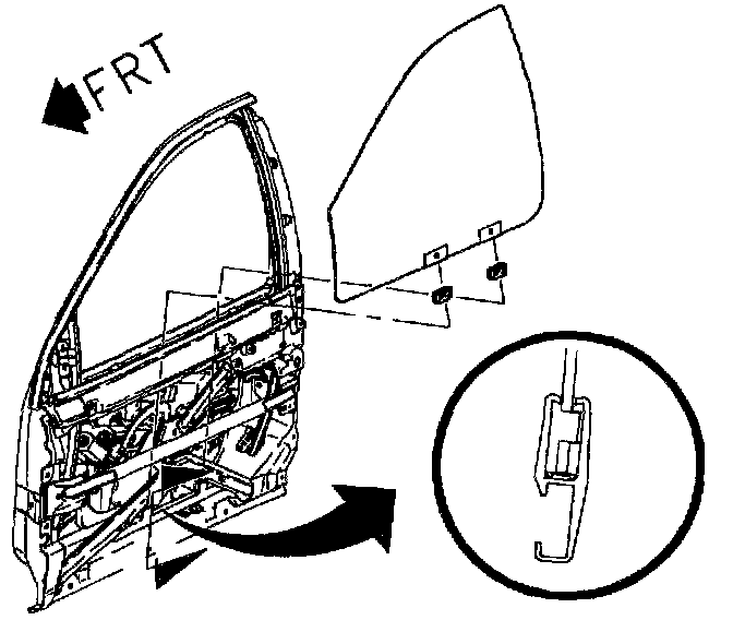 1. Install door window into door and align sash with window insulators (slide clips).