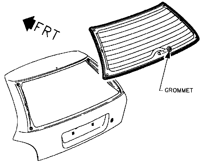 1. Carefully insert the grommet into the rear window assembly. Make sure the grommet is seated to the window from both the inside and outside of the window.