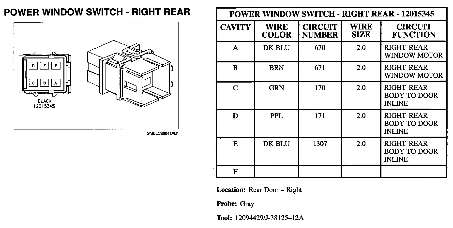 Power Window Switch - Right Rear: