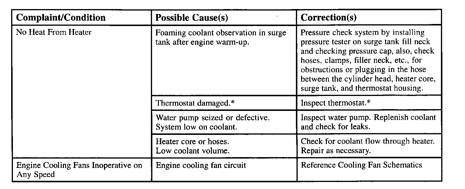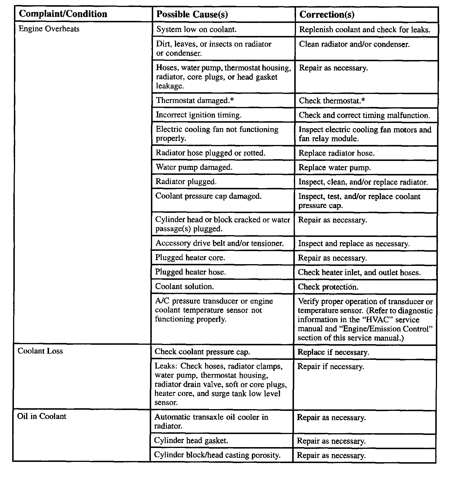 COOLING SYSTEM TROUBLESHOOTING CHART* If the engine tends to overheat, removal of the thermostat will adversely affect cooling efficiency.