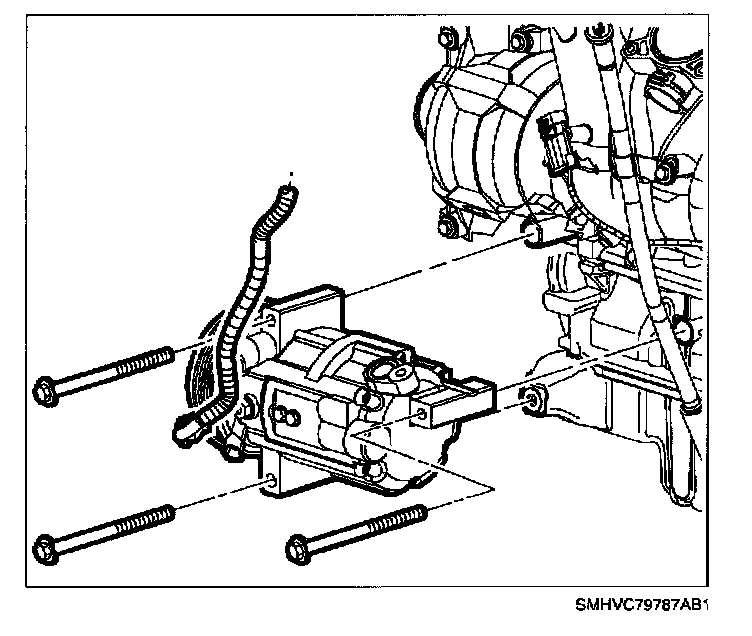 14. Remove compressor-to-engine bolts and remove compressor.