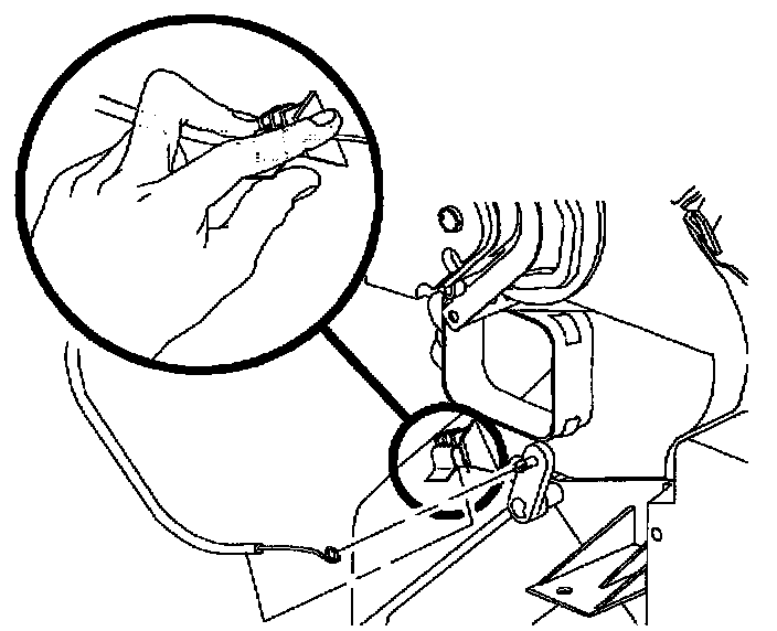 4. Remove cable from temperature door lever by squeezing end of pin and pulling cable eyelet outward.