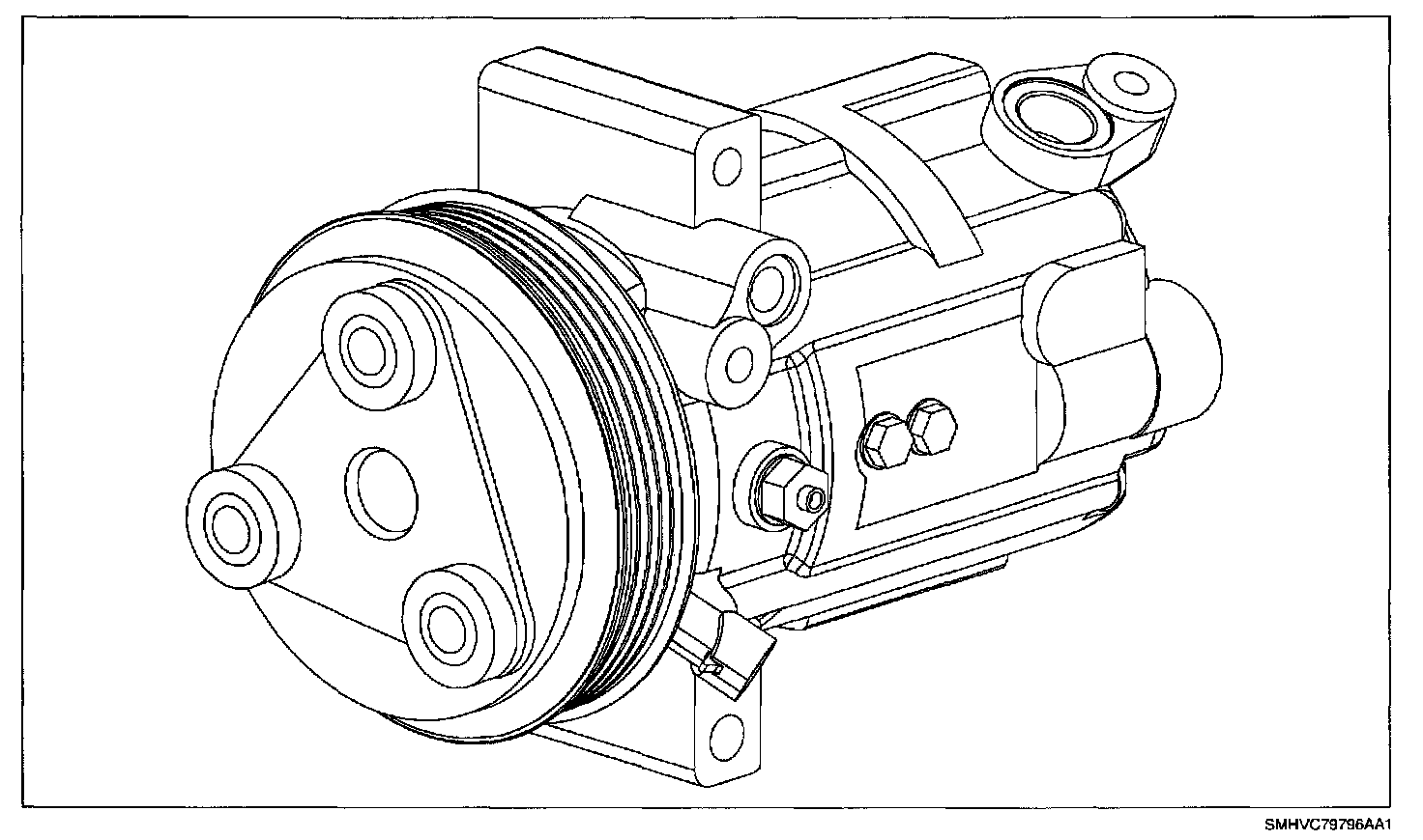 The compressor is a variable displacement rotary vane type pump. The compressor uses a control valve to automatically vary its displacement as system heat loads change. The displacement can vary from 6.5 percent (9 cc) to 100 percent (140 cc).
