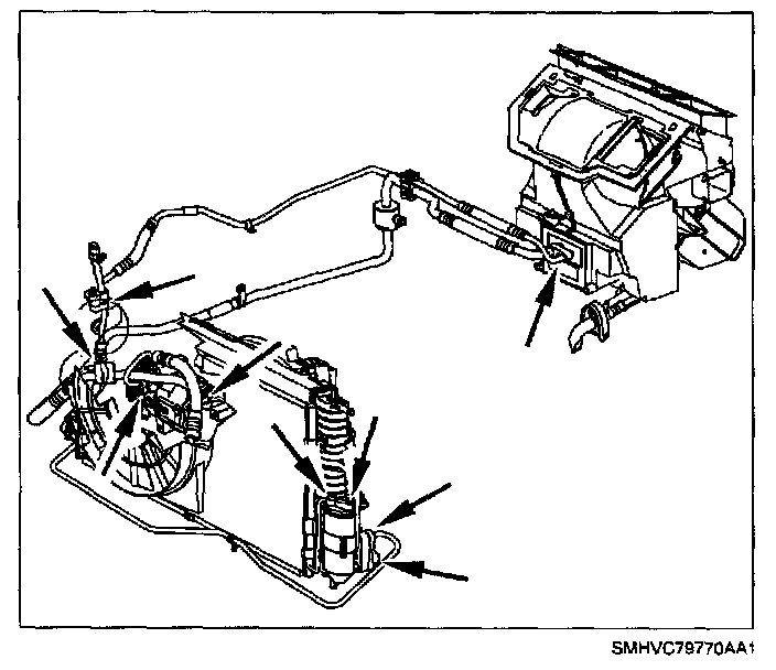 CAUTION: R-134A SERVICE EQUIPMENT OR VEHICLE A/C SYSTEMS SHOULD NOT BE PRESSURE TESTED OR LEAK TESTED WITH COMPRESSED AIR. SOME MIXTURES OF AIR/R-134A HAVE BEEN SHOWN TO BE COMBUSTIBLE AT ELEVATED PRESSURES. THESE MIXTURES ARE POTENTIALLY DANGEROUS AND MAY RESULT IN FIRE OR EXPLOSION CAUSING INJURY OR PROPERTY DAMAGE. ADDITIONAL HEALTH AND SAFETY INFORMATION MAY BE OBTAINED FROM REFRIGERANT AND LUBRICANT MANUFACTURERS.
