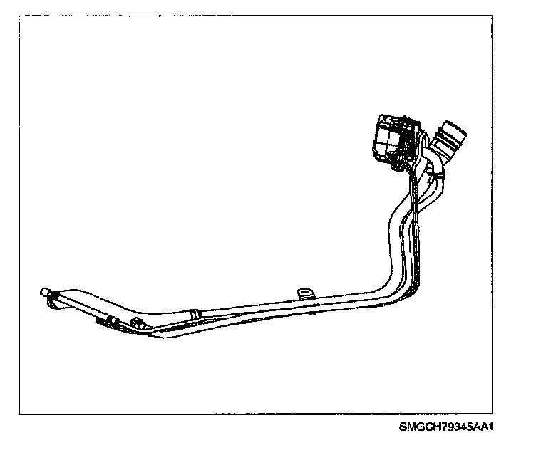 The fuel filler pipe consists of a fuel delivery tube, vapor recirculating line and a separate vent pipe. The recirculating line is used to carry fuel vapor and control their entry back into the fuel tank during the refueling process. The vent line is used to vent air (after the fuel vapors have been captured by the EVAP canister) from the fuel tank during refueling or during thermal expansion of the vapor in the fuel tank.