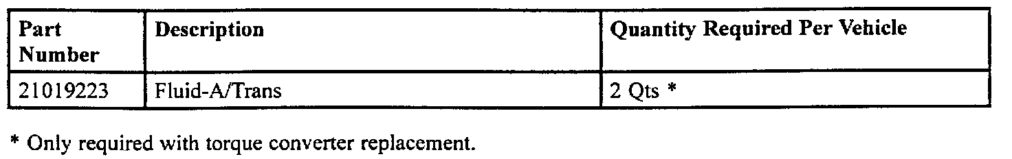Incidental Parts: The replacement of the torque converter and/or transaxle may require the use of some incidental parts. These parts are as shown.