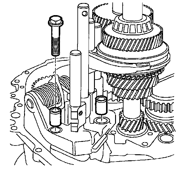 27. Install and tighten reverse idler shaft bolt. Check condition of O-ring and replace if necessary.
