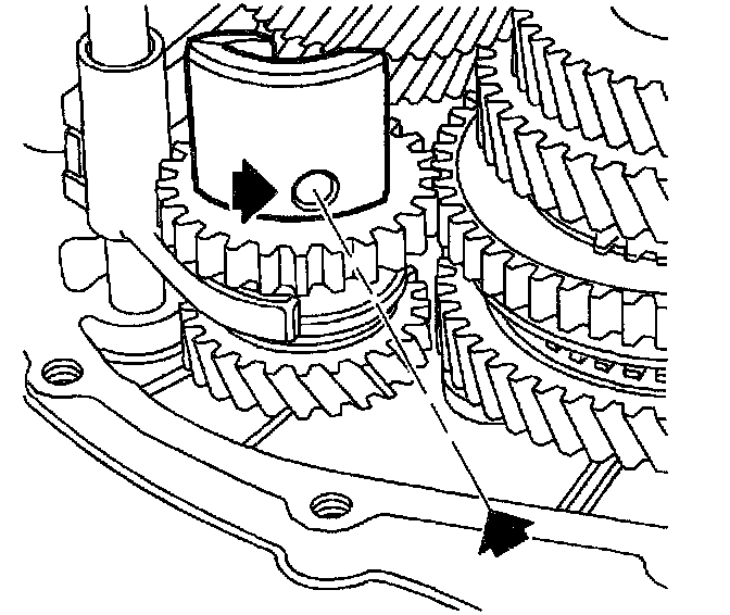 37. Install 5th gear synchronizer sleeve. Reference sleeve alignment mark made during disassembly.