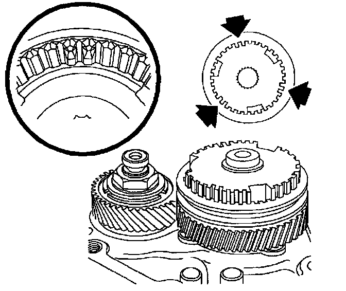 NOTICE: The tangs on the blocking rings must fit in the hub gaps. Care must be taken to ensure that the blocking ring spring is engaged on the blocking ring and does not get pinched between the hub and the blocking ring.