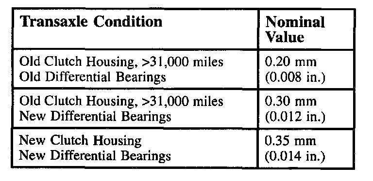 - Input shaft bearing end play is 0.09 - 0.15 mm (0.003 - 0.006 inch)