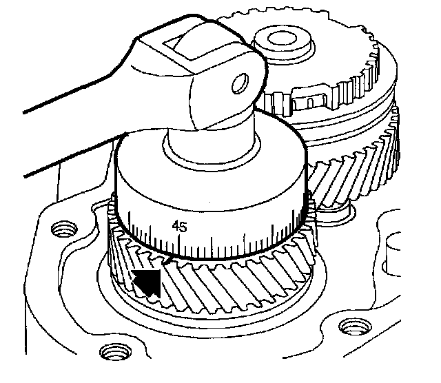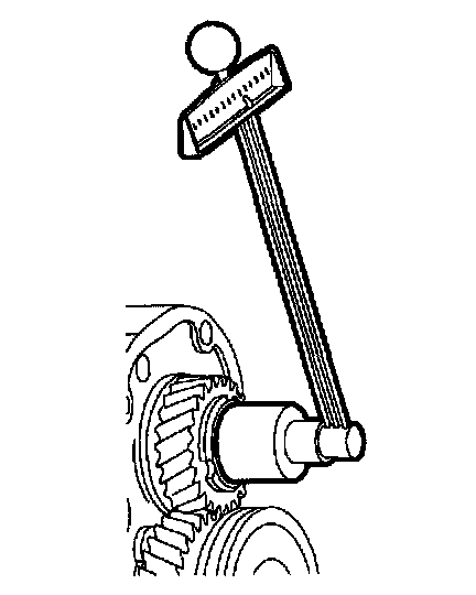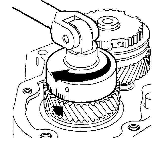 53. Install Inch Pound Torque Wrench J7754-C (or equivalent) on output shaft nut. Transaxle must be in neutral. Rotate wrench clockwise at an even speed. Read average value during rotation.