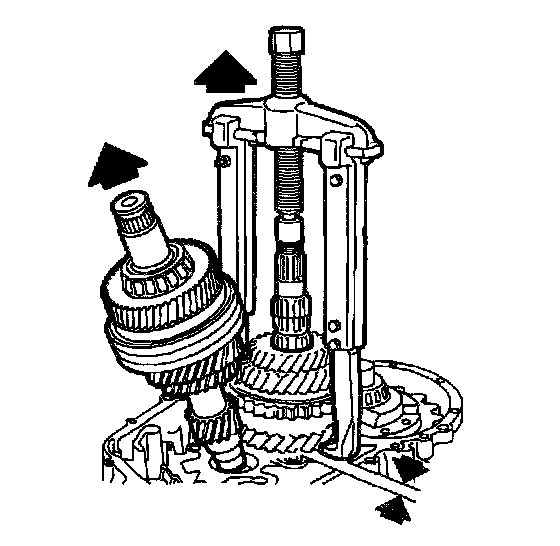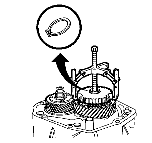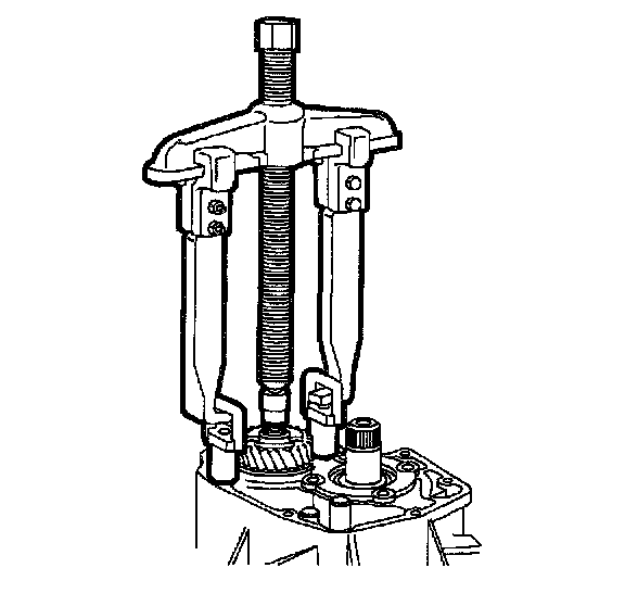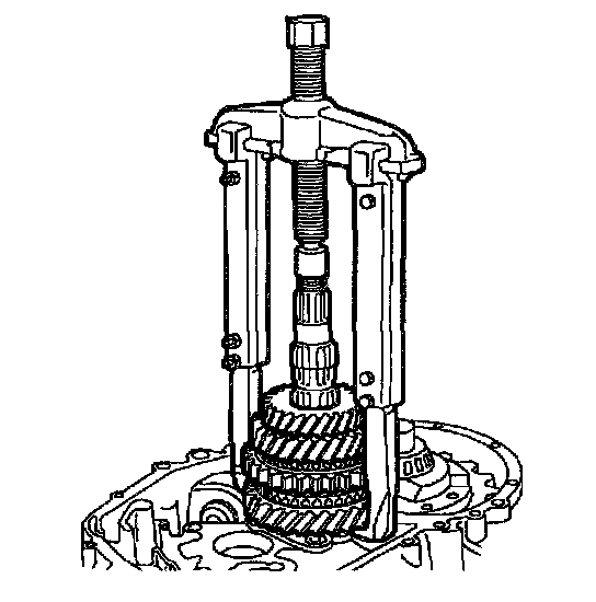15. Use Three Jaw Puller J25031-A to remove 5th gear synchronizer hub.