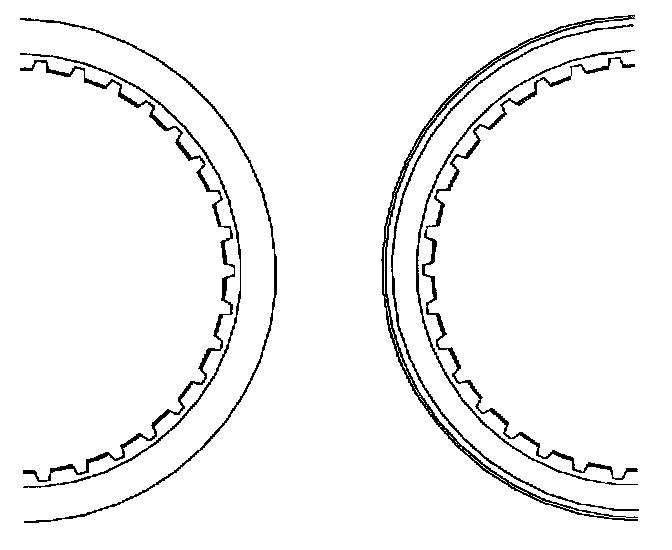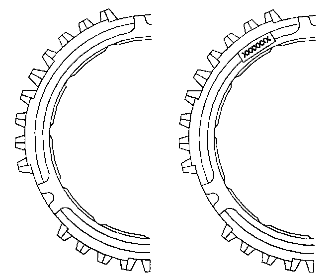 17. If the 5th synchronizer sleeve removed from the transaxle looks like the sleeve on the left, then it is a 1st design. The identification mark for the 2nd design is the extra groove on the top of the 5th gear sleeve.