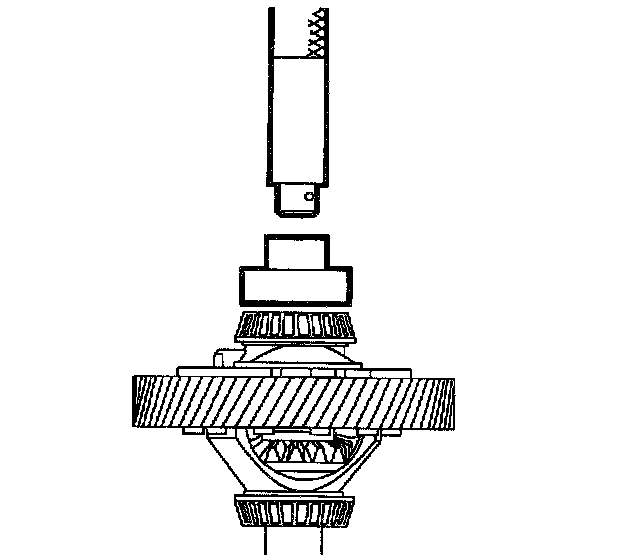 1. Press differential bearings onto differential assembly using Differential Bearing Installer SA9120T and Ball Detent Handle SA9172G. Use bearing support 87-92-210 under the differential as shown.