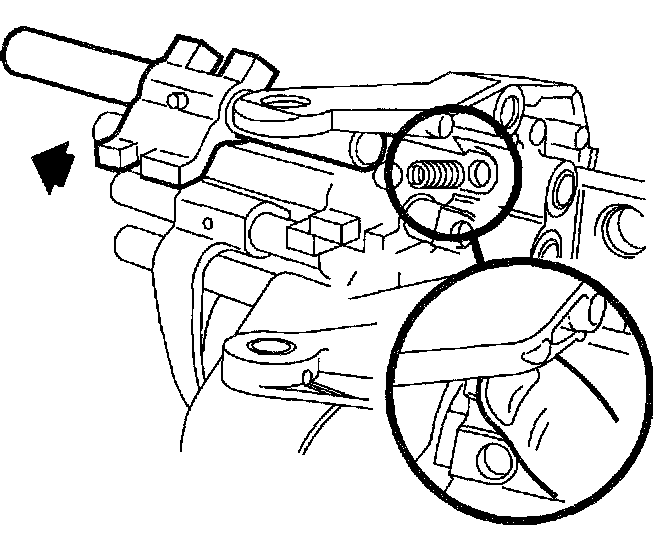8. Install 5th detent spring and ball. Compress ball and spring and install 5th shift shaft. Place shaft in neutral position.