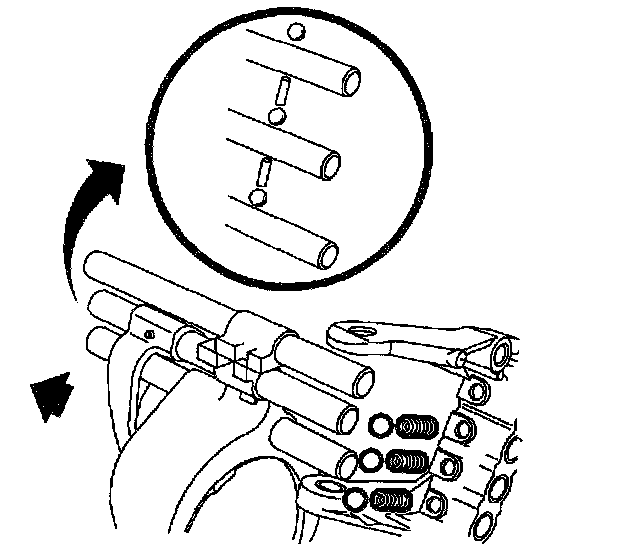 3. If any shift forks, shift shafts, or shift shaft blocks were disassembled, reassemble shift shafts by driving new retaining pins into shift forks or shift shaft blocks.