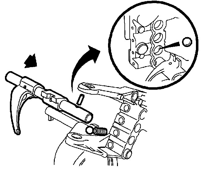 7. Insert shift shaft interlock ball between 3rd/4th shaft and 5th shaft. Install interlock pin in 5th shaft.