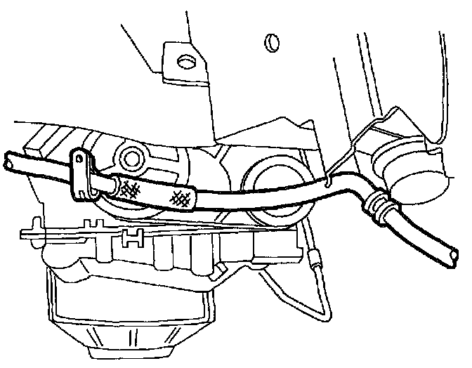 NOTICE: There is a stand-off clip between the A.I.R. tube and the wiring harness at the front of the transaxle. This must be in place to eliminate the possibility of chafing between the tube and the harness.