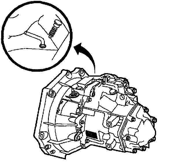 9. Remove transaxle fill plug from top of transaxle. Fill transaxle with two quarts of manual transaxle lubricant (P/N 21018899).