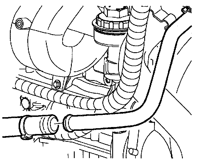 63. Install the hose clip to the two power steering lines.