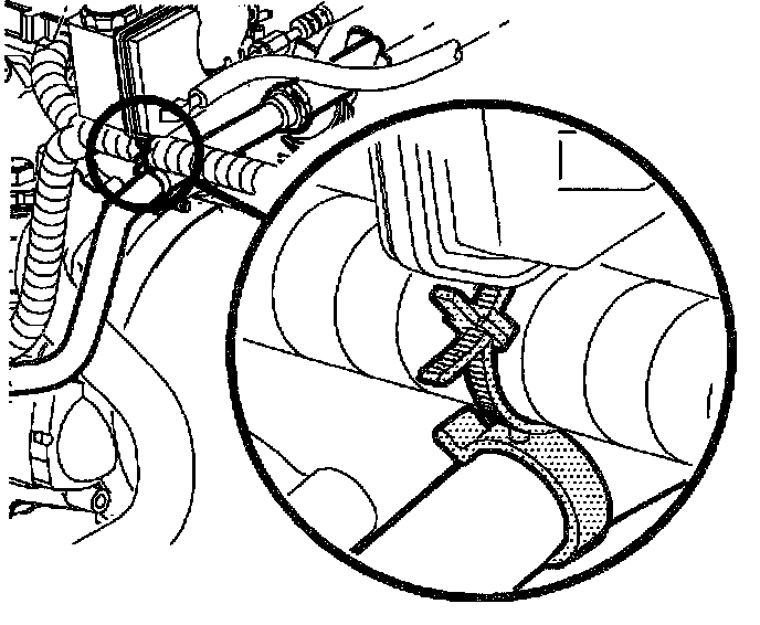14. Reposition A/C line against body and install A/C line retaining clips.