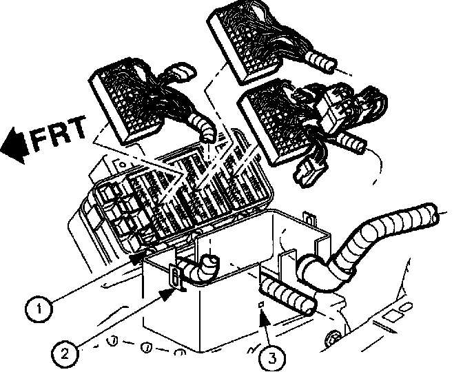 69. Install wire harnesses to UHFB case. The wire harness grommets have retaining tabs that lock into the case (3) when the harnesses are fully installed.