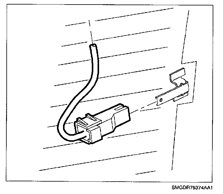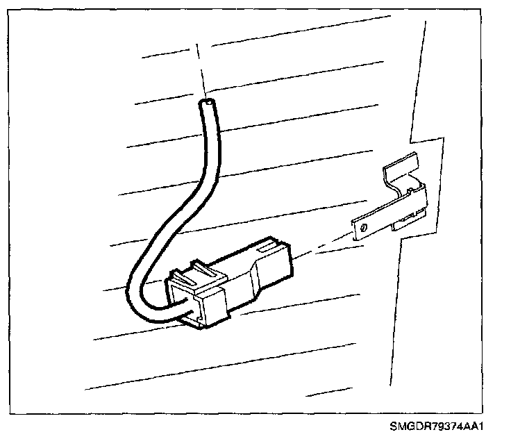 5. Remove electrical connectors from rear window defogger bus bars. Locate electrical connectors and mark location both inside and outside of window with tape so as not to damage wiring/connectors when using power glass removal tool.