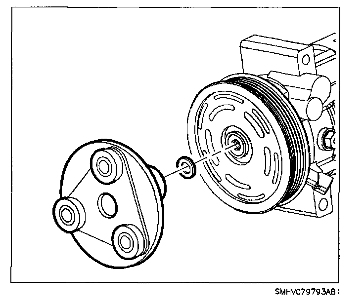 7. Install shims removed from old drive plate into clutch drive plate and install onto compressor shaft.